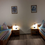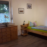 Die Zimmer verfügen über ein gemeinsames schönes Wohnzimmer mit Smart TV. Es gibt zwei Zimmer mit jeweils 2 und 3 Einzelbetten. Die Dusche und Toilette befinden sich im gemeinsamen Flur mit der FeWo, werden aber nur von diesen Zimmern genutzt! Es gibt eine kleine gemeinsame Teeküche mit Mikrowelle, Wasserkocher, Kaffemaschine, Toaster, Kühlschrank. Auf Anfrage können Sie auch den Geschirrspüler und Backofen/Herd unser privaten Küche nebenan nutzen.
